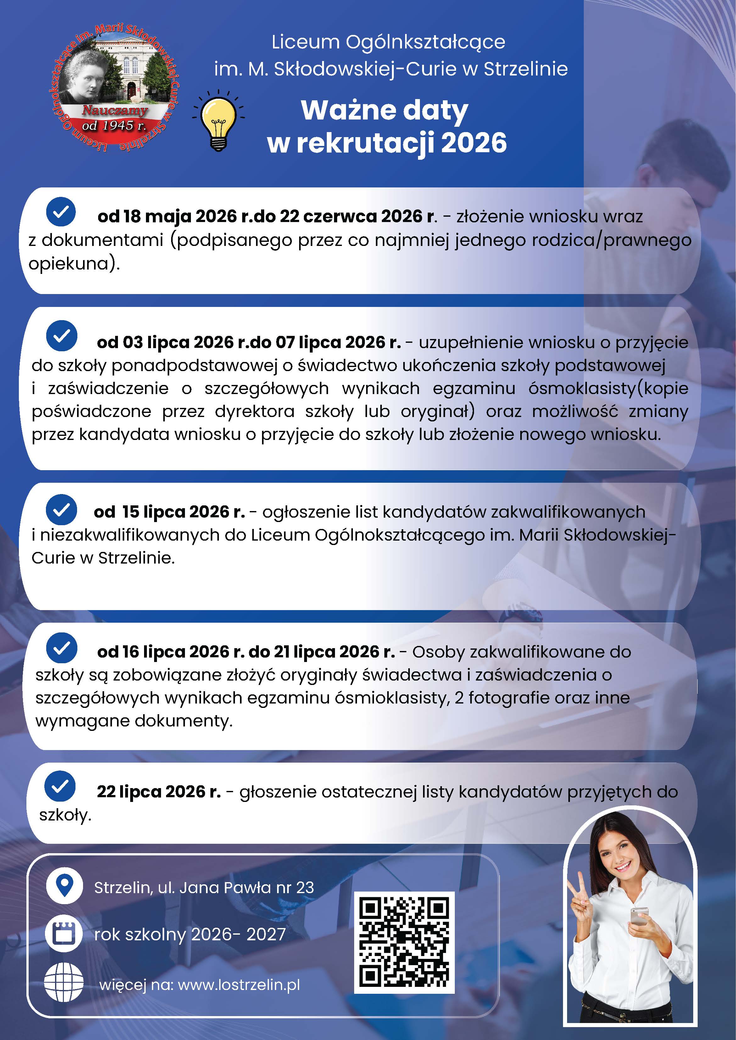 Szczegółowe informacje dostępne są u szkolnego doradcy zawodowego - Agaty Okoń